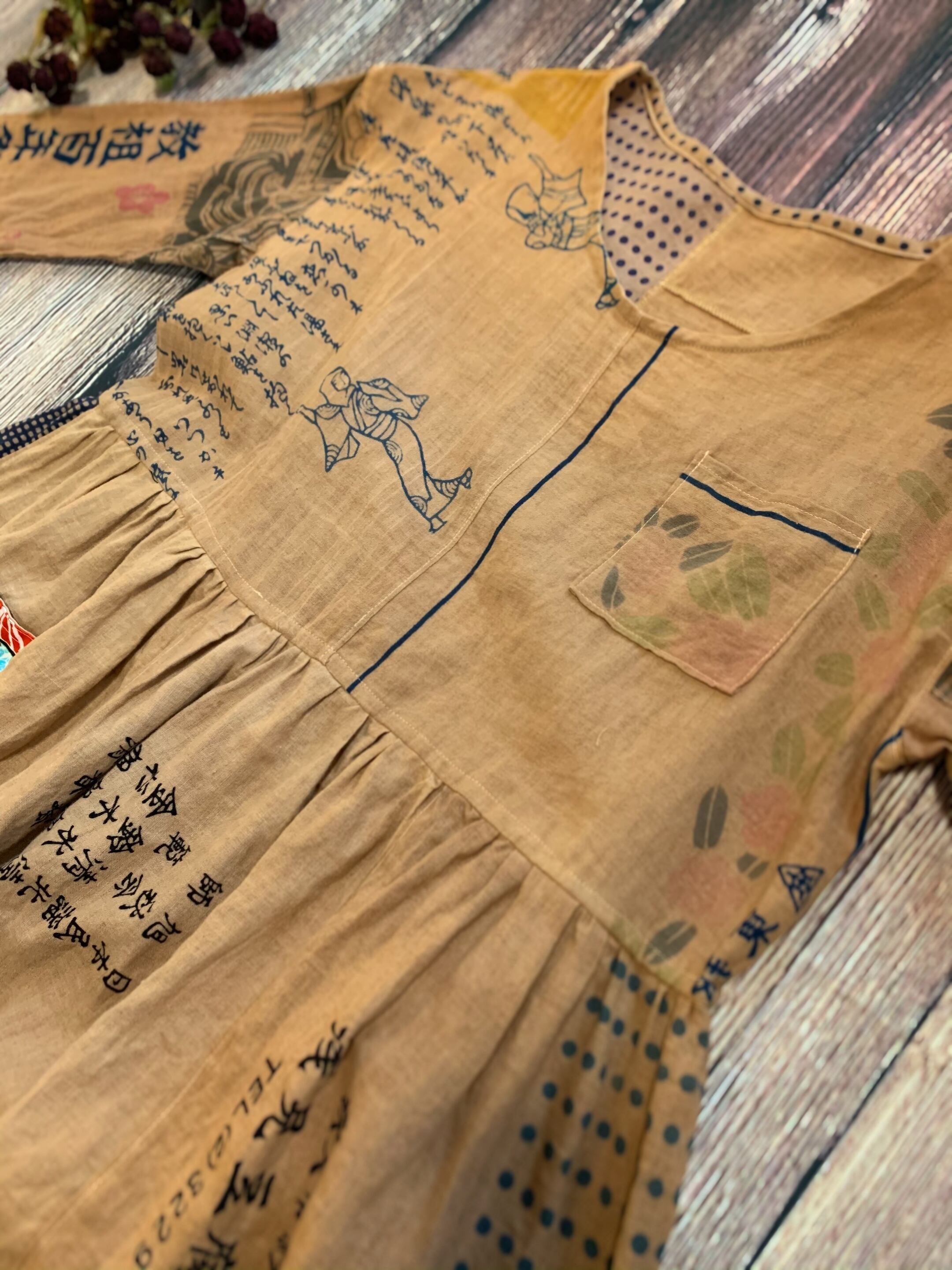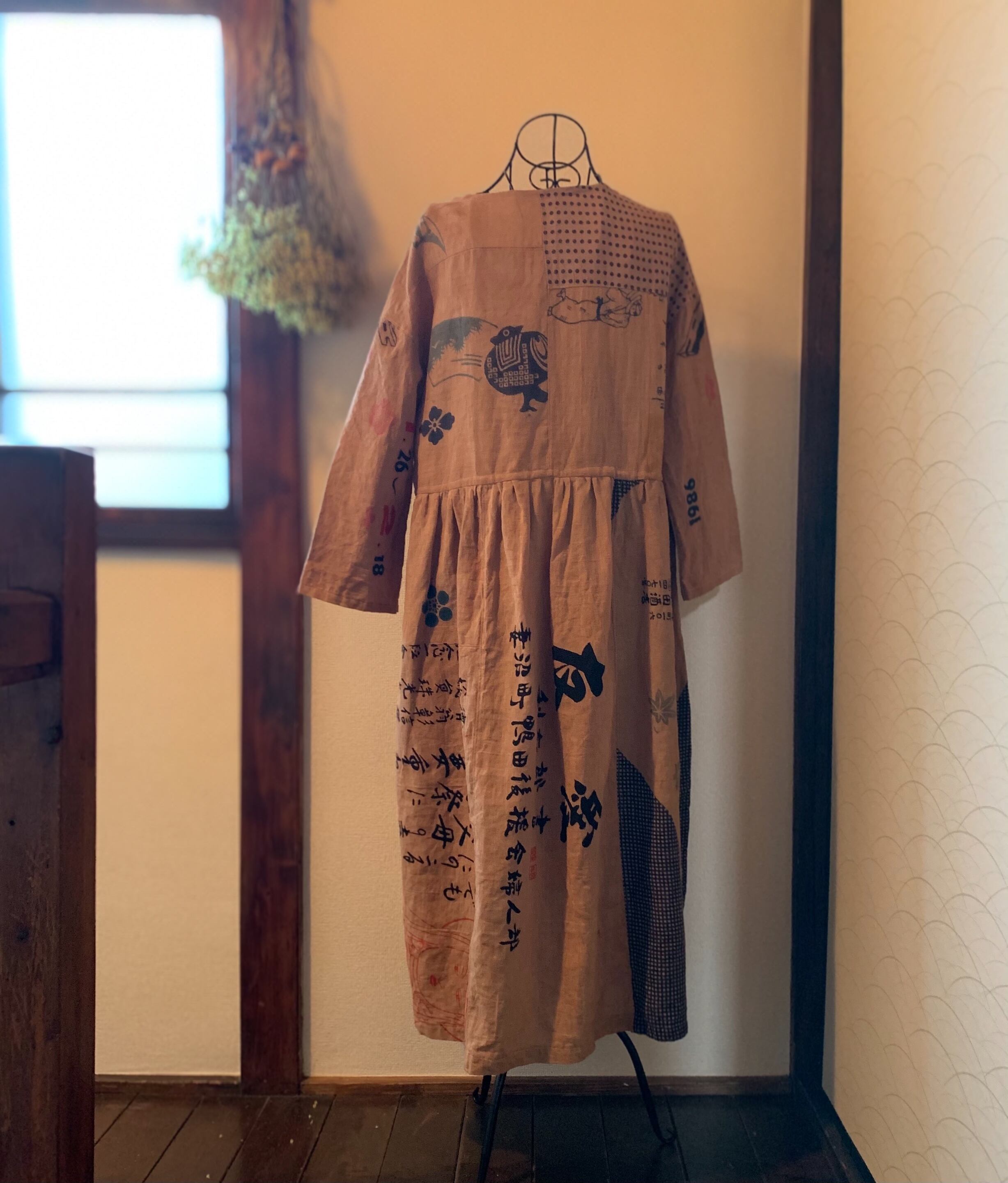 年代物のレトロな手ぬぐいを使ってワンピースを作りました。