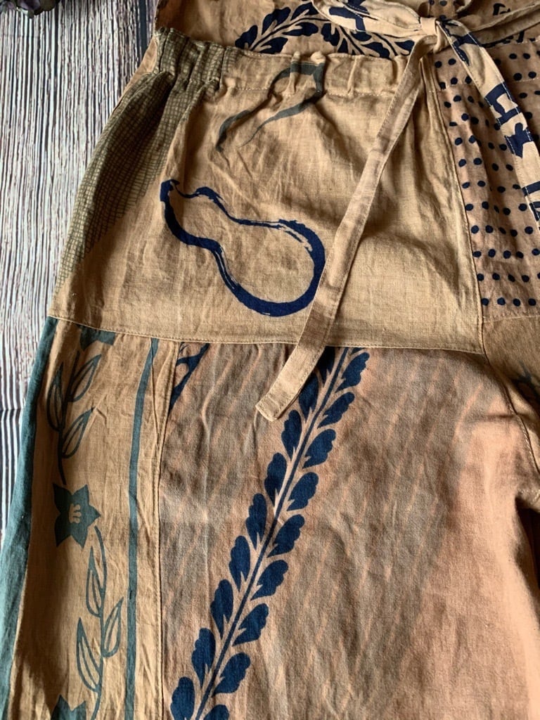 柿渋染め手ぬぐいパッチワークのサロペットパンツ