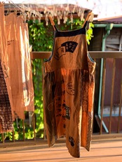 柿渋染め手ぬぐい ブルー系サロペットワンピース
